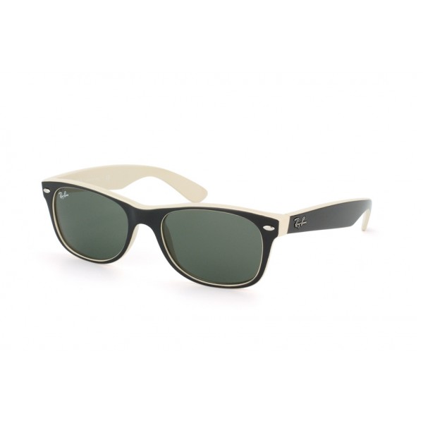 lunettes de soleil ray ban new wayfarer rb2132 noir et beige 875, existe en 2 tailles 52-18 et 55-18, verres gv15,  disponible en verres correcteurs ou non correcteurs